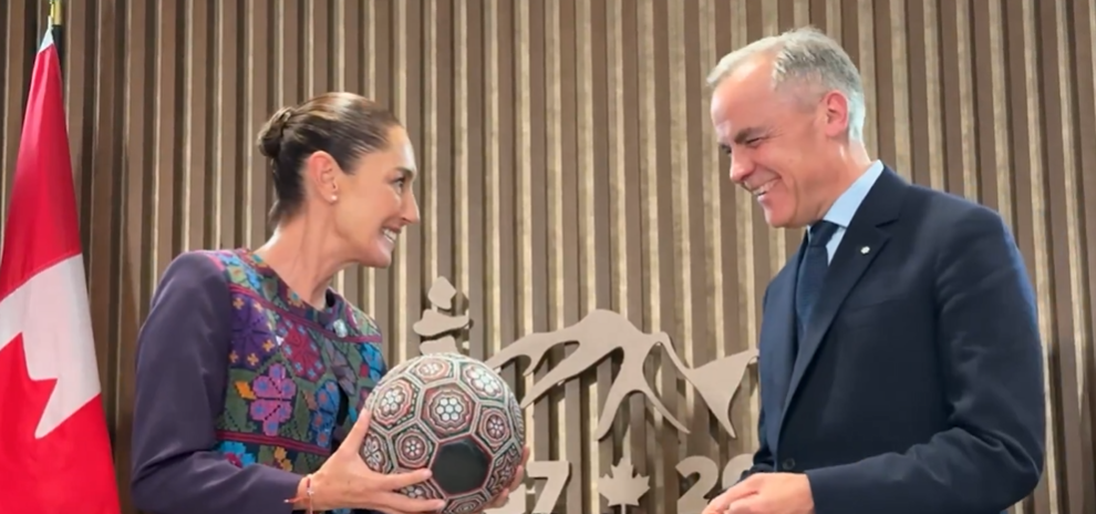 Portada: @Claudiashein_ (17 DE JUNIO, 2025).-La presidenta, Claudia Sheinbaum, culminó su agenda en el G7 sosteniendo una reunión con el primer ministro de Canadá, Mark Carney. Durante su encuentro, la mandataria mexicana le regaló al mandatario anfitrión de la cumbre un balón de fútbol como muestra de amistad entre México y Canadá, en aras de … Sigue leyendo Sheinbaum cierra participación en el G7 con gesto simbólico hacia Canadá (+video)